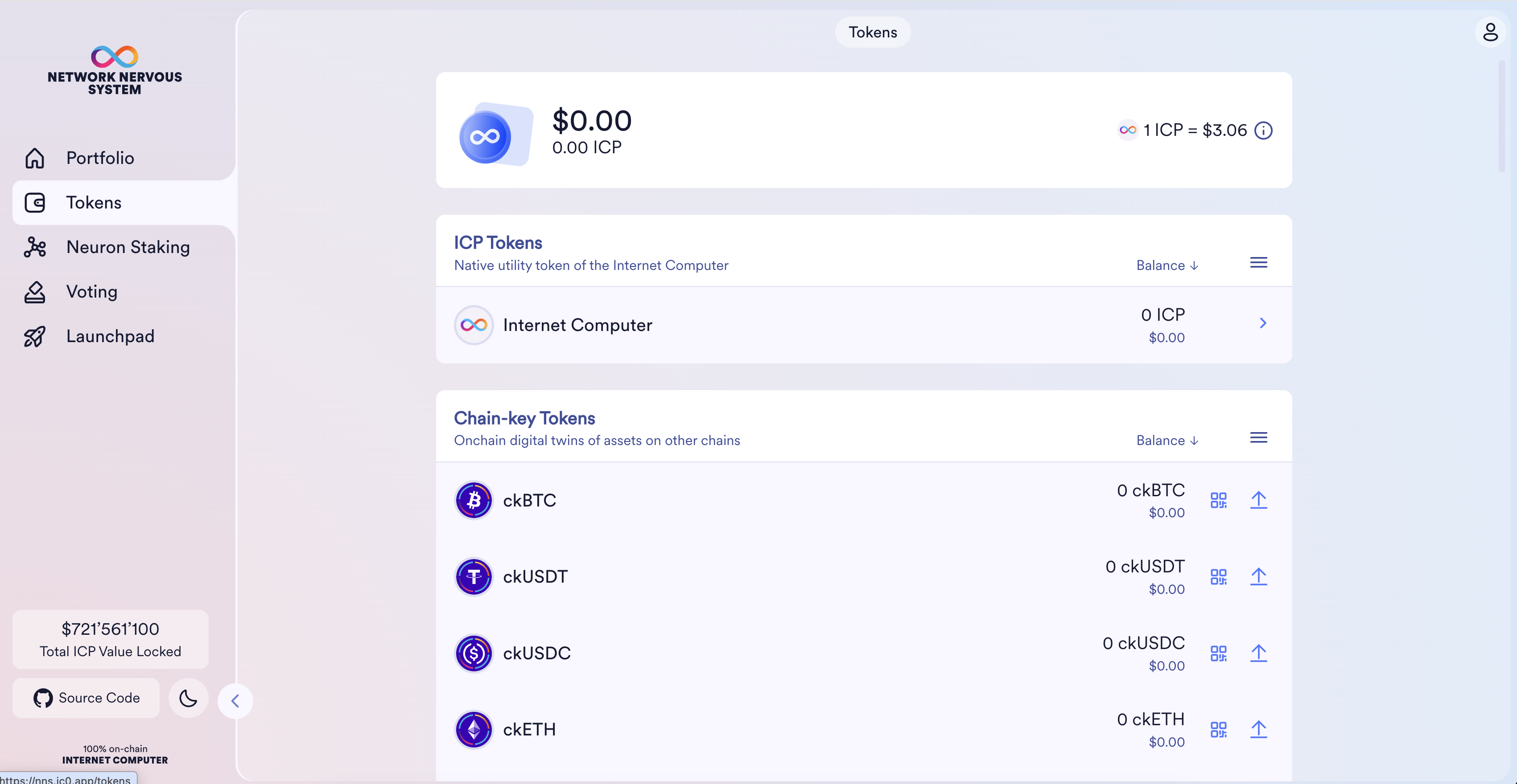 Logging into the NNS dapp using an Internet Identity creates a main account for you in the ICP ledger.