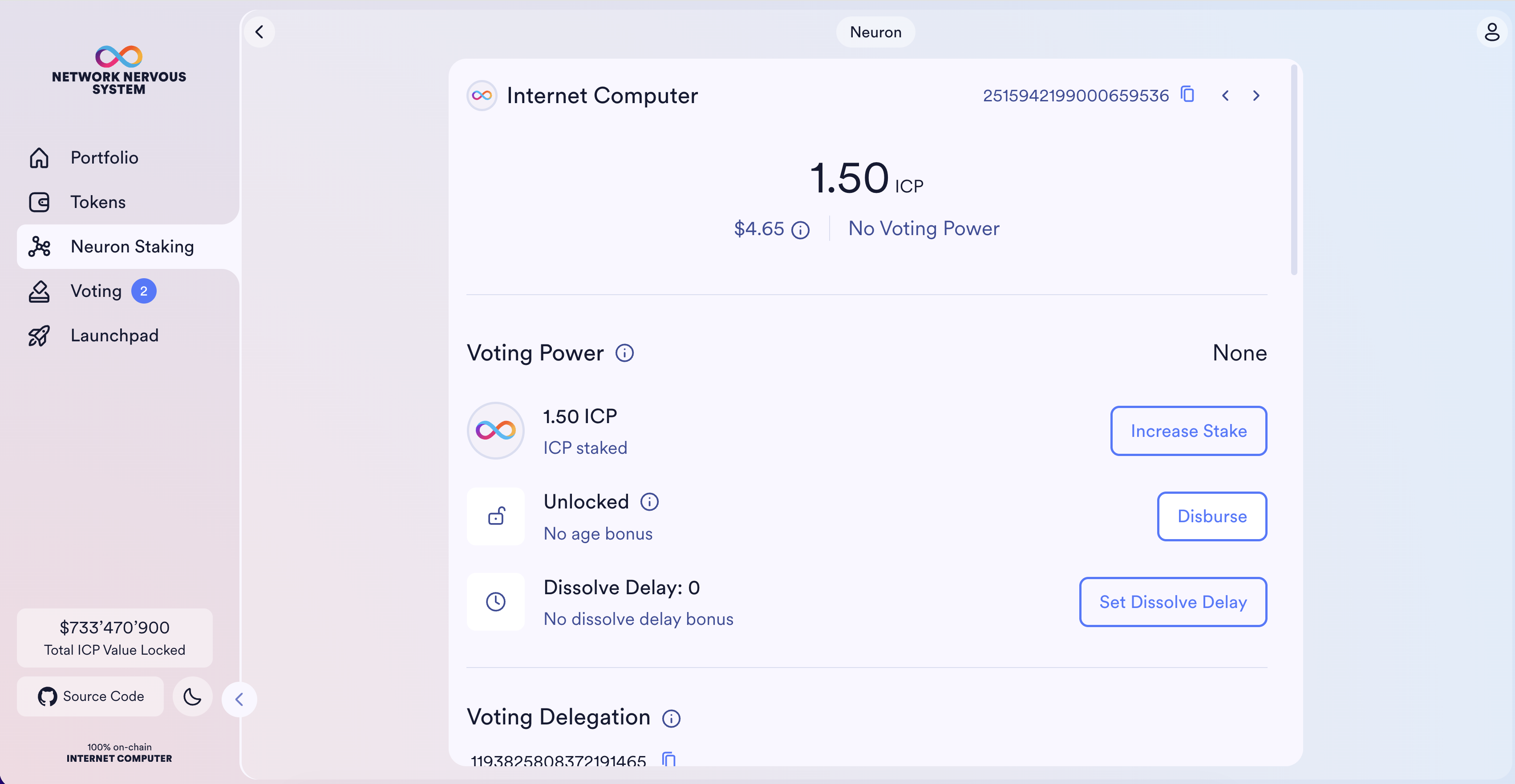 When the dissolve delay timer for a neuron reaches zero, it is dissolved and you can disburse the neuron’s stake and transfer its locked ICP utility token balance to the ledger account you specify.